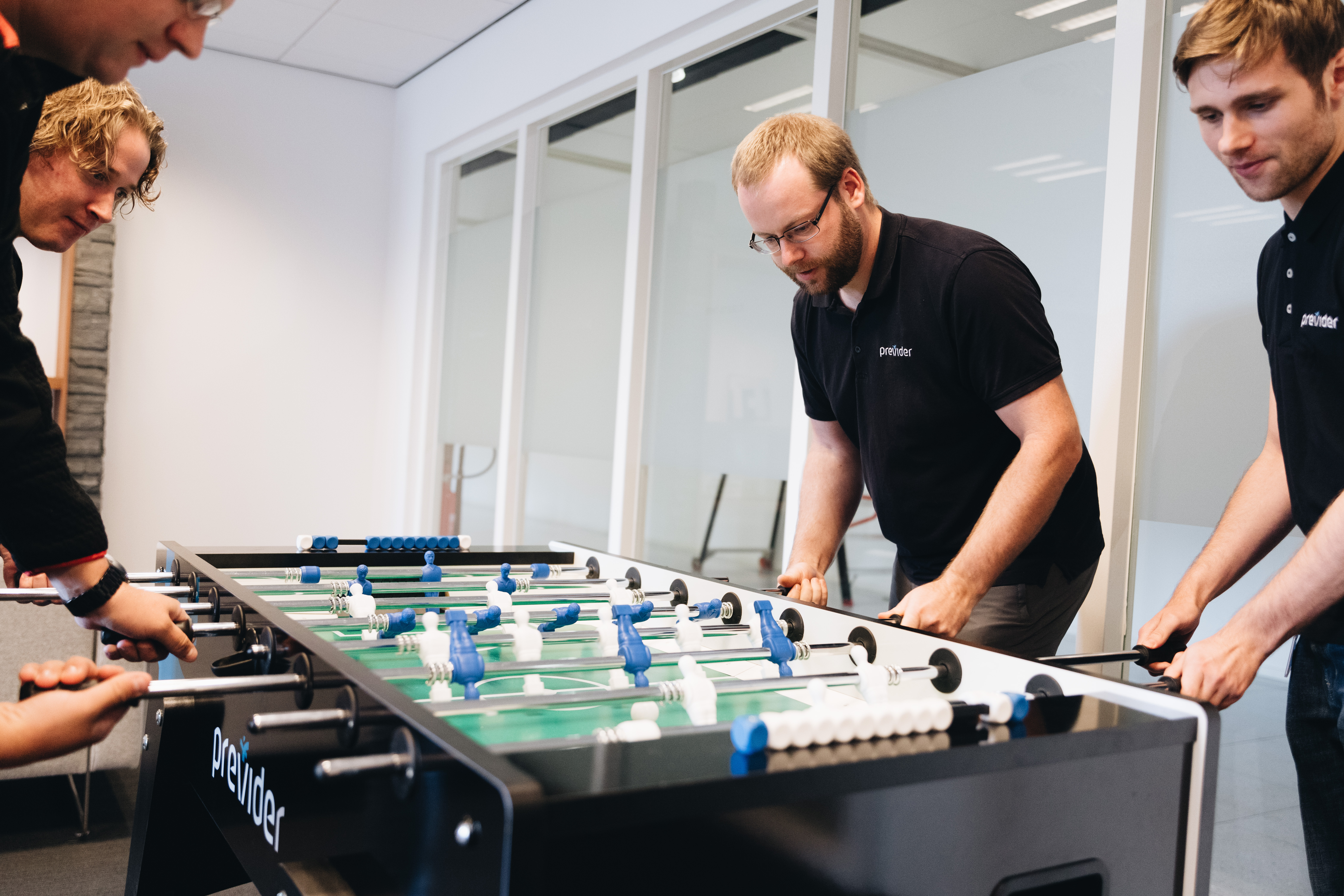 Wij zijn ervan overtuigd dat onze collega's beter werk afleveren en onze klanten tevredener houden wanneer zij met plezier aan de slag gaan. Bij ons staat plezier daarom voorop. Een vrijdagmiddagborrel, even de gedachten verzetten met een virtueel rondje op het circuit van Monza, een ommetje tijdens de lunch of een potje tafelvoetbal: alles om de batterij weer op te laden om er vervolgens met zijn allen weer vol tegenaan te kunnen!